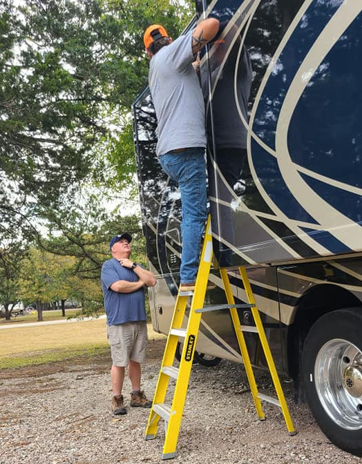 After Belle Starr, we made it to Texas. Our first Texas campground was Lake Texoma Thousand Trails, where we were scheduled to spend three weeks. We finally got hold of a mobile RV Tech to look at the slide on our motorhome. He got it open in about 15 minutes and diagnosed the problem. Parts needed to be ordered, and he worked with our extended warranty to get that done. It took five weeks for the parts to arrive,e then he got them installed so we could get back on the road.
