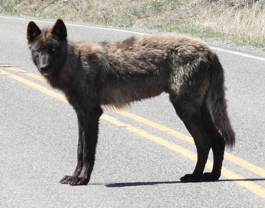 Early in the year, we got to see a wolf eating on a carcass along the Madison River.