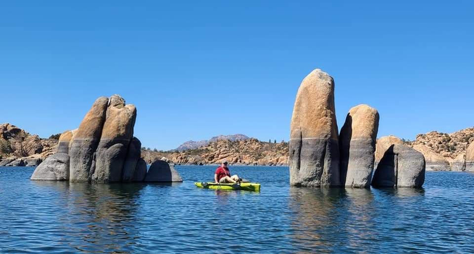 One of the amazing places we found to kayak was Watson Lake near Prescott. Very cool rock formations and some geese for Lisa to feed.