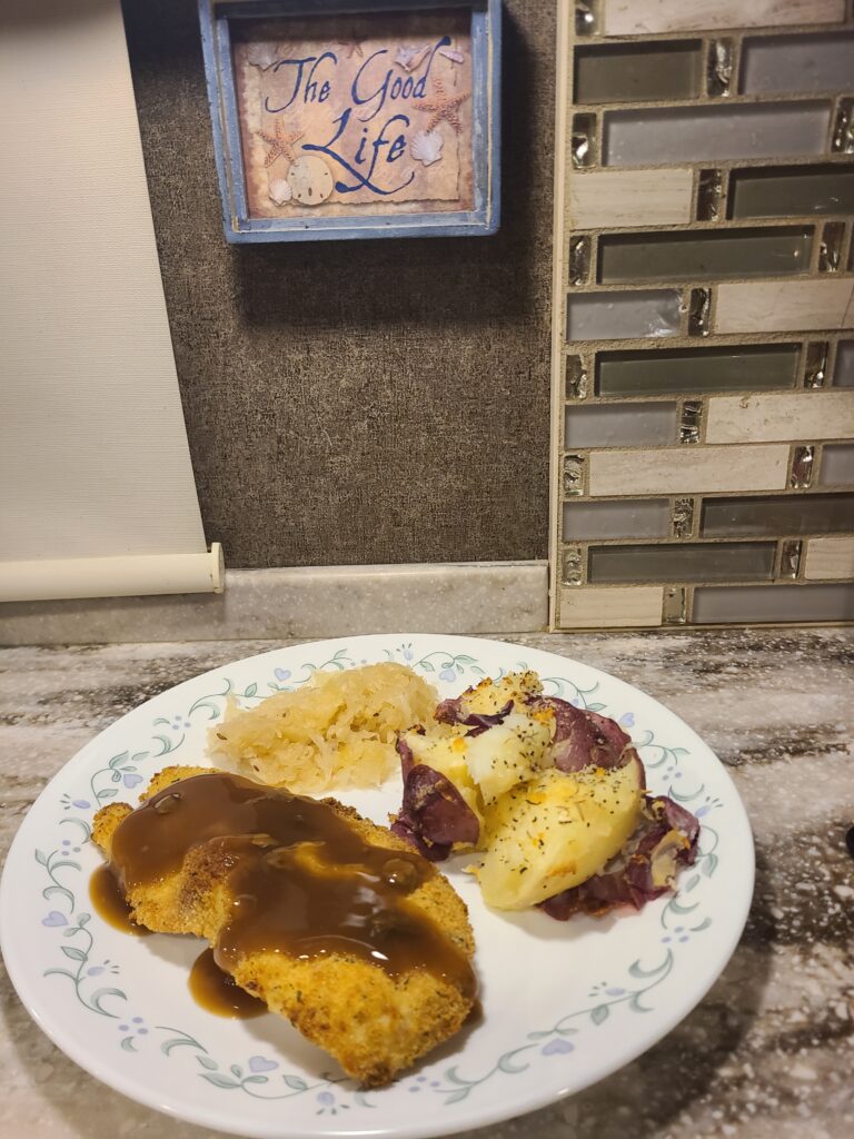 What makes this recipe even better is how versatile it is. It works beautifully with either chicken or pork. And in true comfort-food fashion, Lisa and I like to finish ours with a spoonful of brown gravy—a small nod to some of the schnitzel plates we enjoyed in Germany. It’s optional, but it really brings everything together.