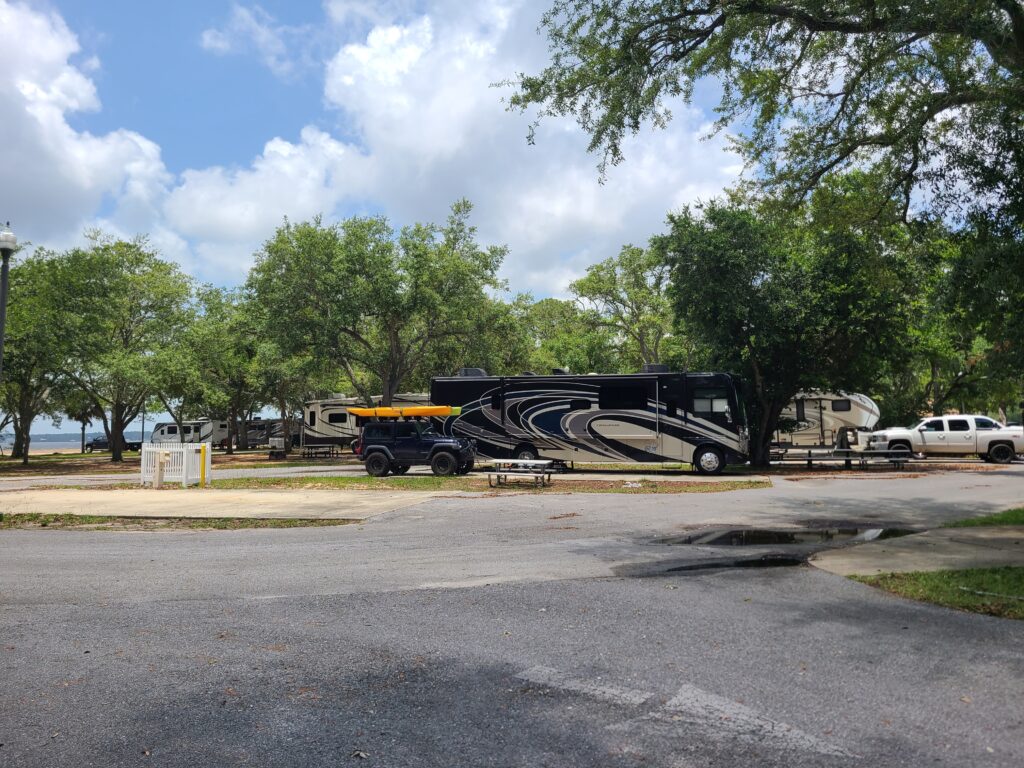 During our Gulf Coast travels, we stayed at Blue Angels Park, part of the Blue Angels Recreation Area near Pensacola, Florida. This military campground sits along Perdido Bay and is available to active duty, retired military, and DoD civilians. We camped here from June 15–22, 2023, and were excited for the mix of affordable rates, waterfront scenery, and the chance to explore Pensacola’s attractions—including the Blue Angels’ home base.