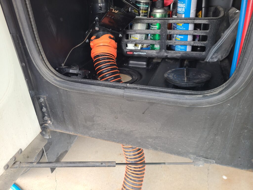 Along with hoses, it’s smart to carry a variety of connectors. Elbows, clear adapters, and Y-connectors make it easier to hook up at oddly placed or multi-port dump stations.