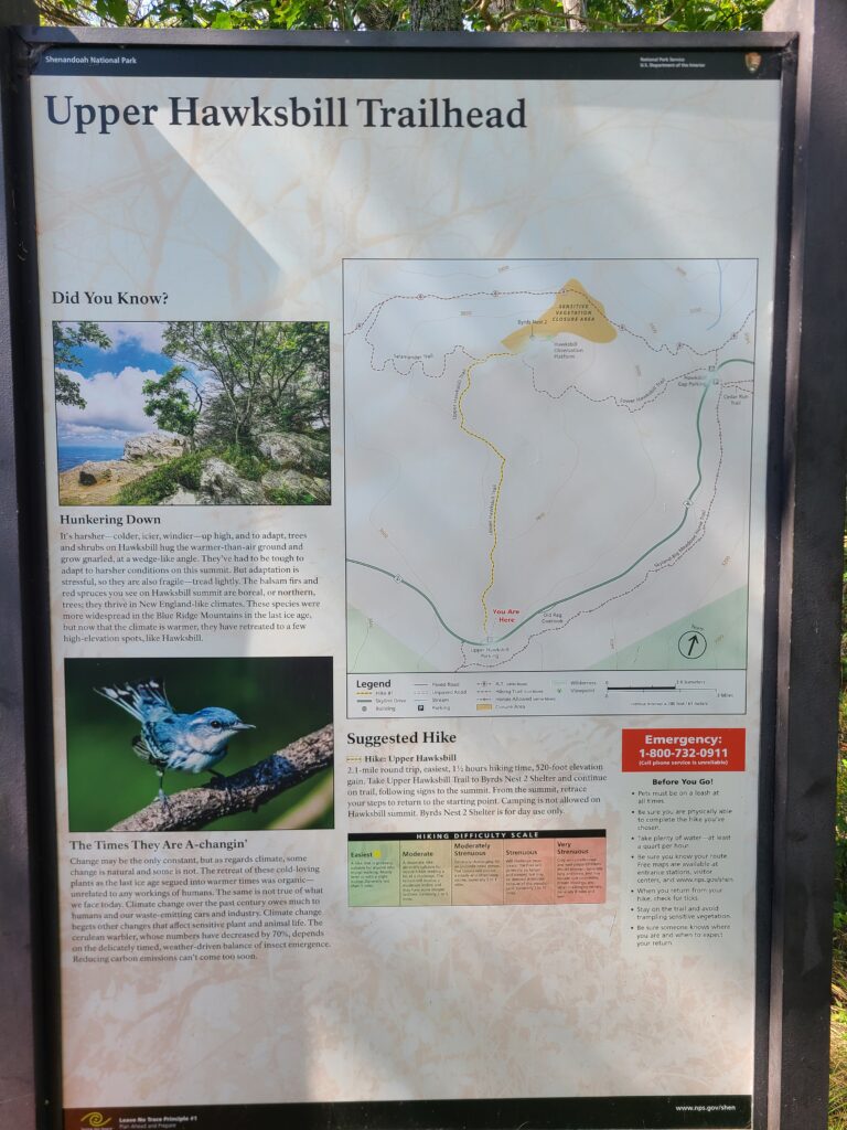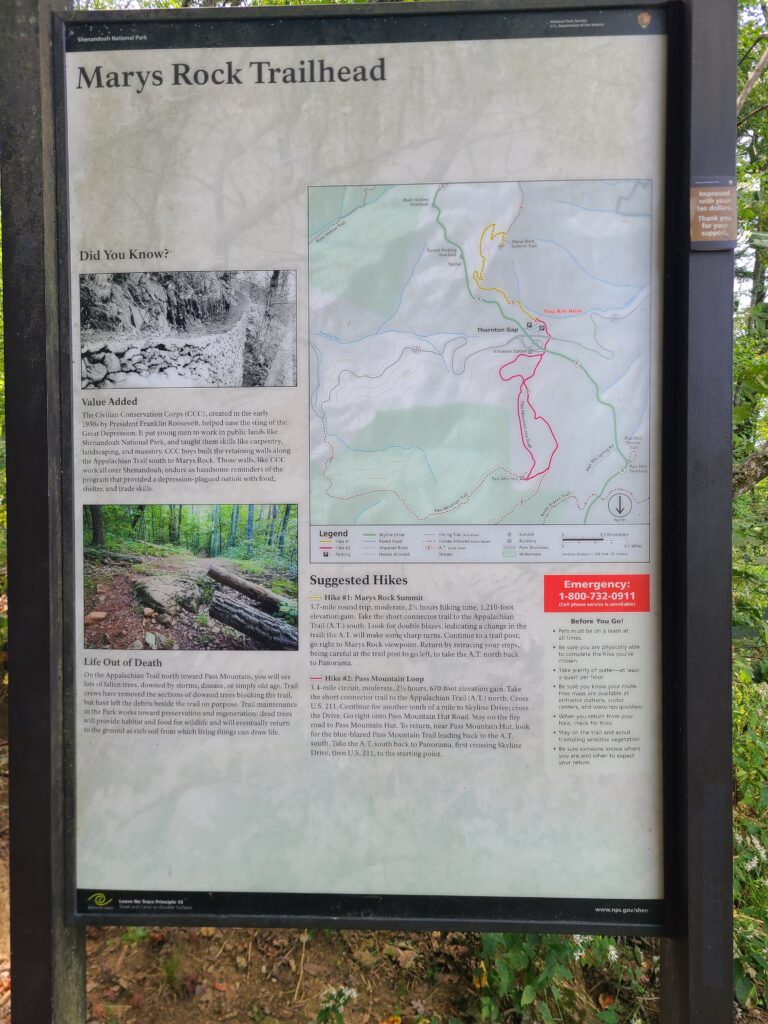 - Trailhead: Blackrock parking (mile 84.4 on Skyline Drive)