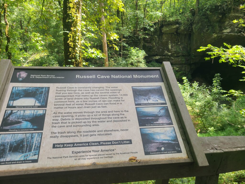 To be honest, Russell Cave isn’t the kind of stop where you’ll spend half a day hiking or exploring. It’s more of a quick but meaningful visit—the kind that helps you connect the dots of American history as you travel. We spent about an hour there, learning about the cave and enjoying the peaceful setting.