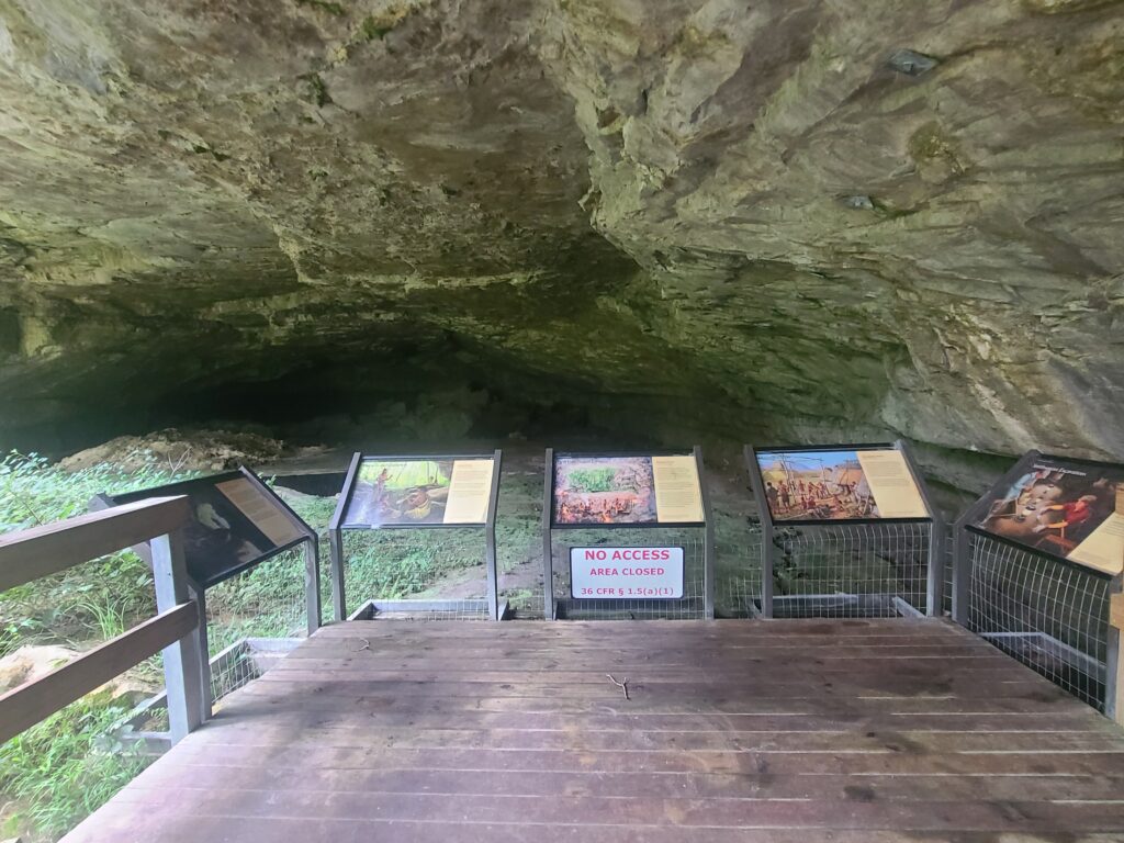 From the parking lot, a short boardwalk trail leads you right to the cave opening. Interpretive signs along the way share details about the history and the people who once lived here. Standing at the overlook, you can get a sense of why this cave was such a valuable shelter—protected from the elements, with access to water and game nearby.