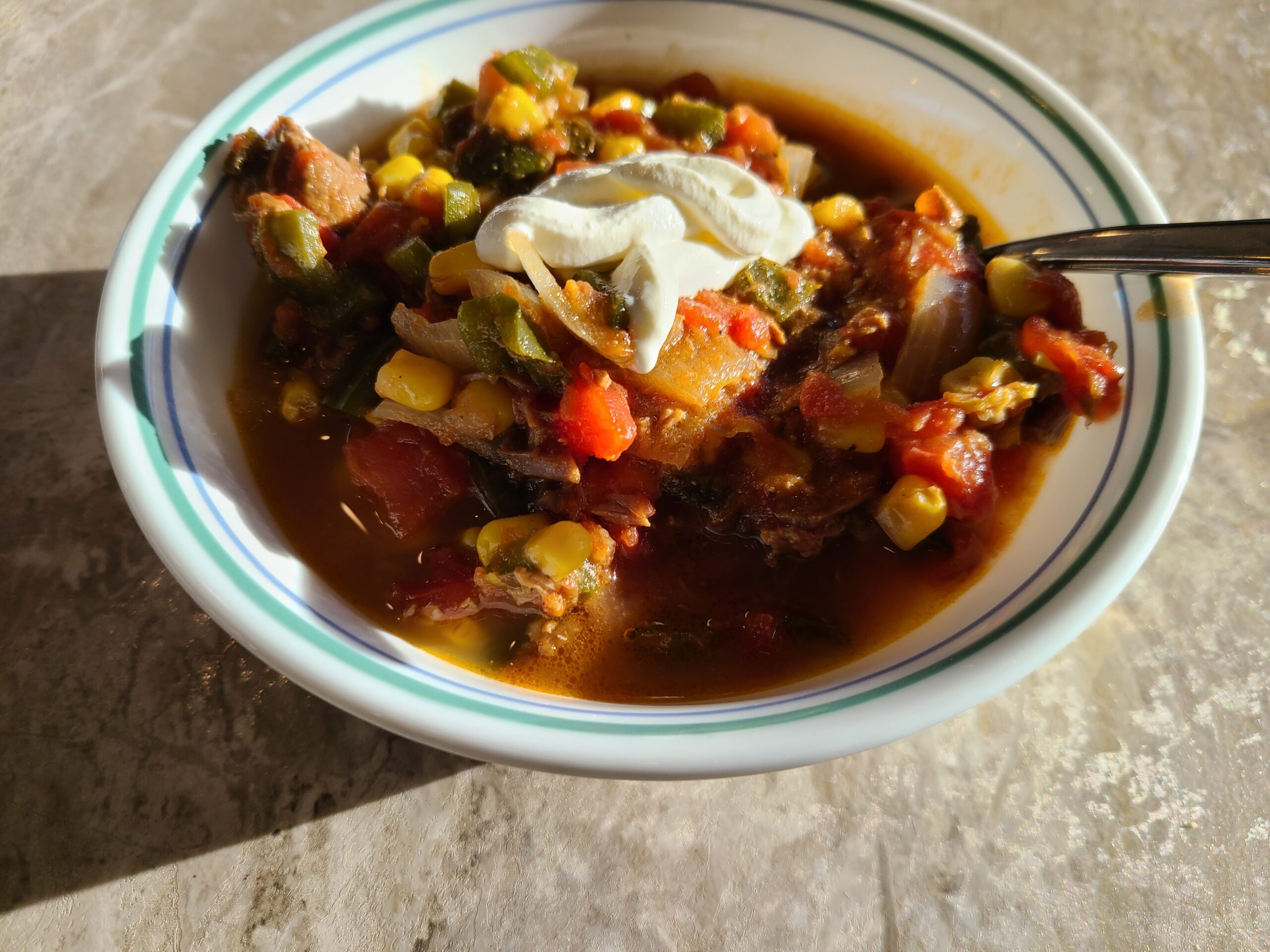 This stew is packed with tender chunks of sirloin, sweet corn, fire-roasted tomatoes, and a blend of poblano and chipotle peppers that add just the right amount of smoky heat. The flavors develop slowly over the day, creating a deep, hearty richness you just can’t get from stovetop cooking.