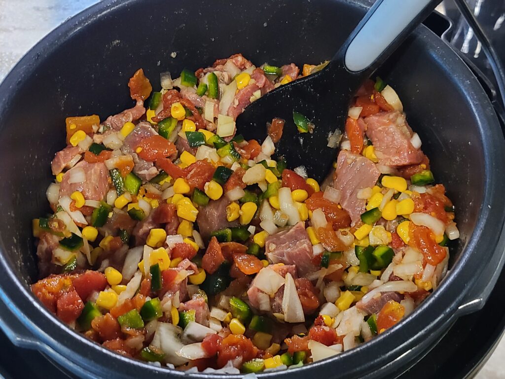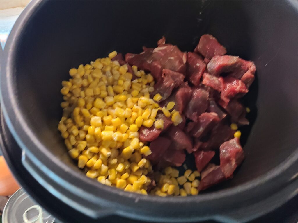 - Add corn, beef, and all remaining stew ingredients to the slow cooker; stir to combine.